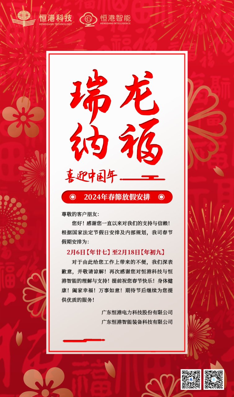 根據(jù)《國務(wù)院辦公廳關(guān)于2024年春節(jié)放假安排的通知》,結(jié)合我司實(shí)際情況,我司春節(jié)假期時(shí)間安排為:2月6日(農(nóng)歷臘月廿七)至2月18日(農(nóng)歷正月初九)。