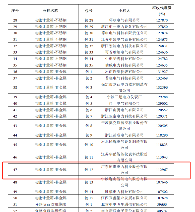 2025年1月2日,喜訊傳來!廣東恒港電力科技股份有限公司成功中標“國網(wǎng)江蘇省電力有限公司2024年第三次省招(含營銷項目)物資協(xié)議庫存公開招標采購項目”中的電能計量箱分標。一直以來,恒港公司始終秉持“客戶至上、質(zhì)量第一”的經(jīng)營理念,憑借卓越的產(chǎn)品品質(zhì)和優(yōu)質(zhì)的服務贏得了市場的高度認可。此次中標,不僅是對恒港公司實力的再次印證,更是對其在電能計量領域深耕細作的回報。未來,恒港公司將持續(xù)以高標準要求自己,與國網(wǎng)江蘇省電力有限公司攜手共進,為電網(wǎng)建設貢獻更多力量,向著新的高峰奮勇前行!
